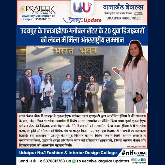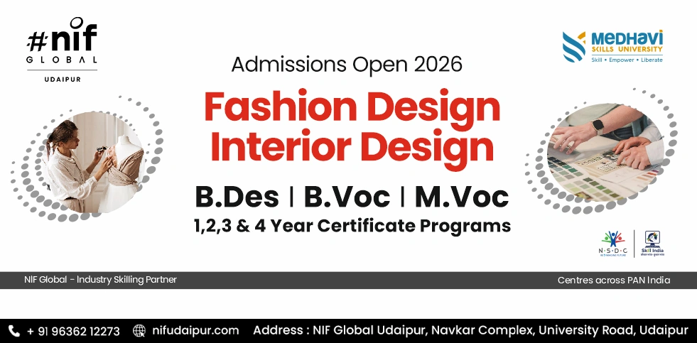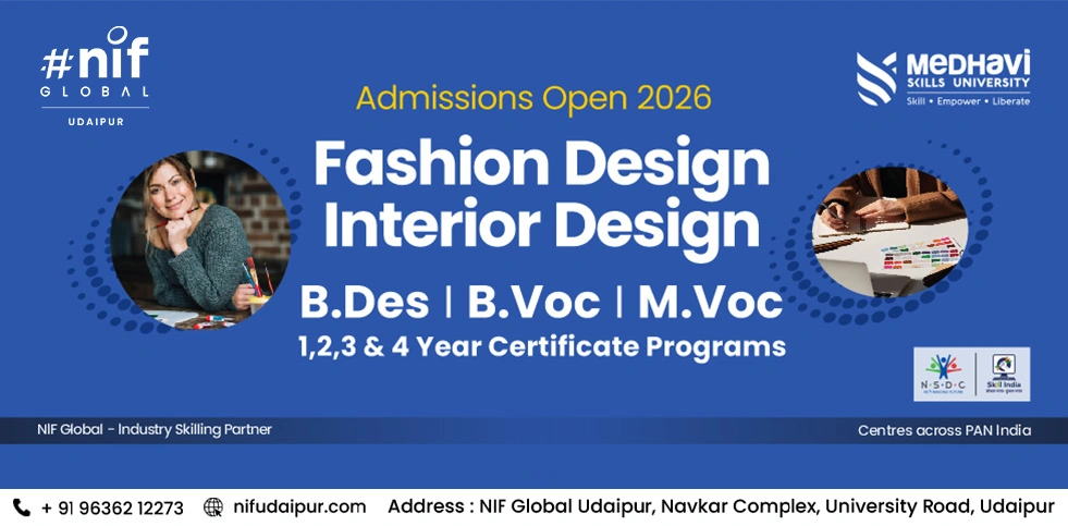 NIF Global Udaipur is a leading institute specializing in professional education in Fashion Design, Interior Design, Beauty & Makeup, and Management. The institute offers a range of courses, including degree programs, diplomas, and short-term certifications.