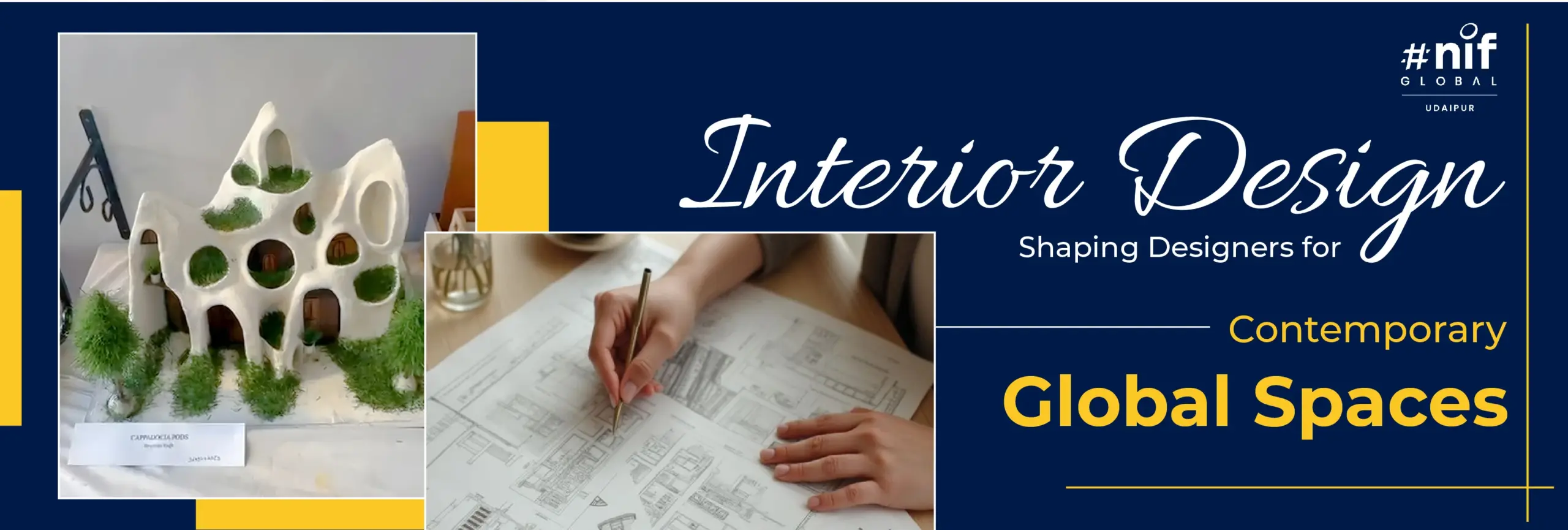 NIF Global Udaipur is a leading institute specializing in professional education in Fashion Design, Interior Design, Beauty & Makeup, and Management. The institute offers a range of courses, including degree programs, diplomas, and short-term certifications.